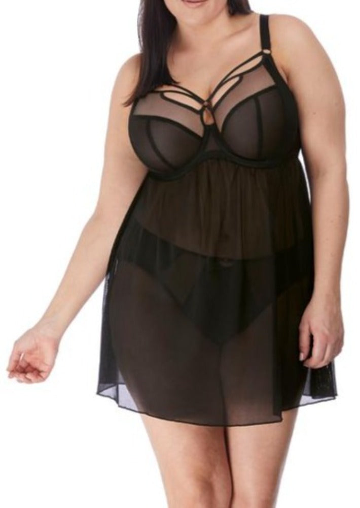 Elomi Babydoll SACHI BH-Hemd mit Bändern im Dekollete schwarz