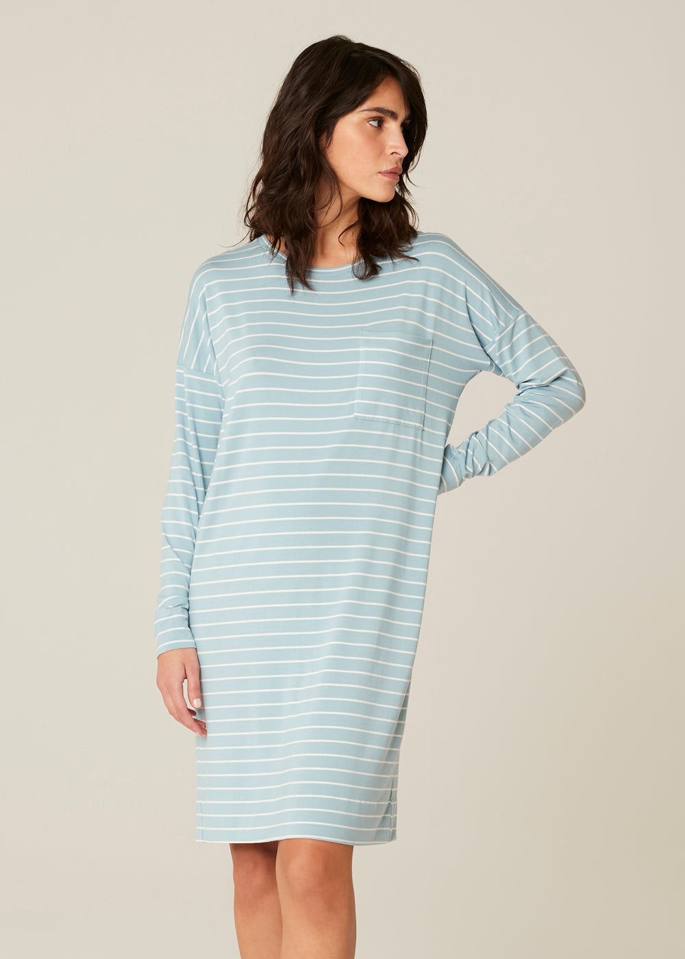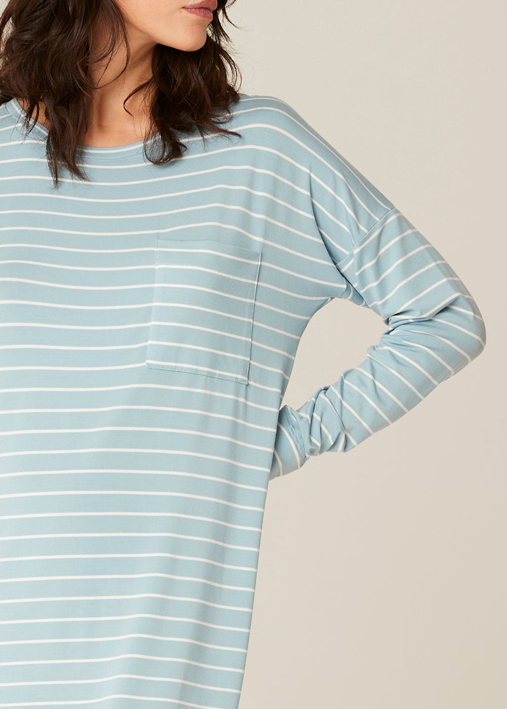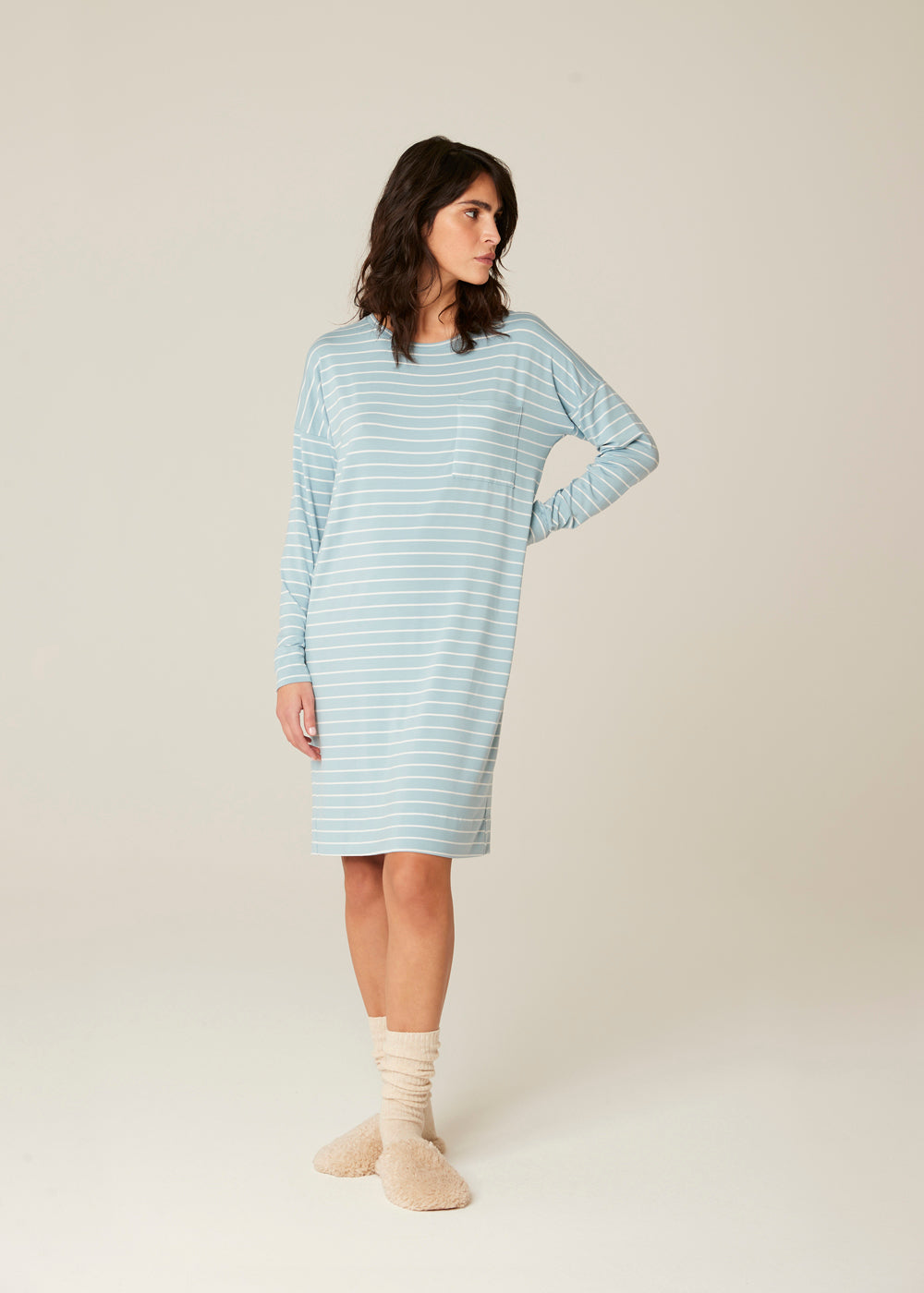Pluto Nachthemd HADLEY hellblau weiß gestreift langarm Rundhalsausschnitt