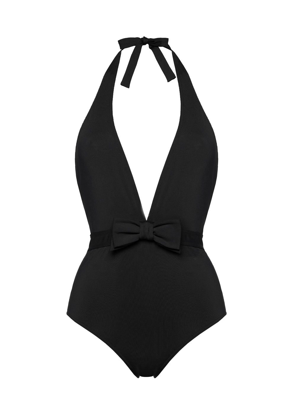 Elegant und geheimnisvoll ist Schwarz ein Must-have für Ihre Garderobe. Mit seinem Tailleneinsatz feiert dieser Badeanzug das Comeback der Schleifen. Der subtil elegante Neckholder bringt vorne einen V-Ausschnitt zur Geltung, während der runde Rückenausschnitt eine zeitlose Raffinesse besitzt.
