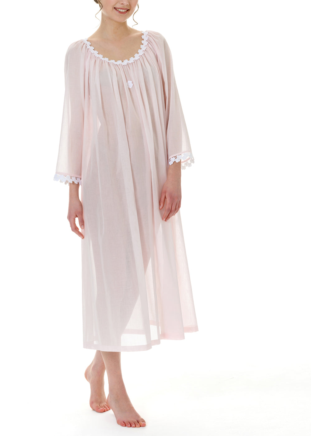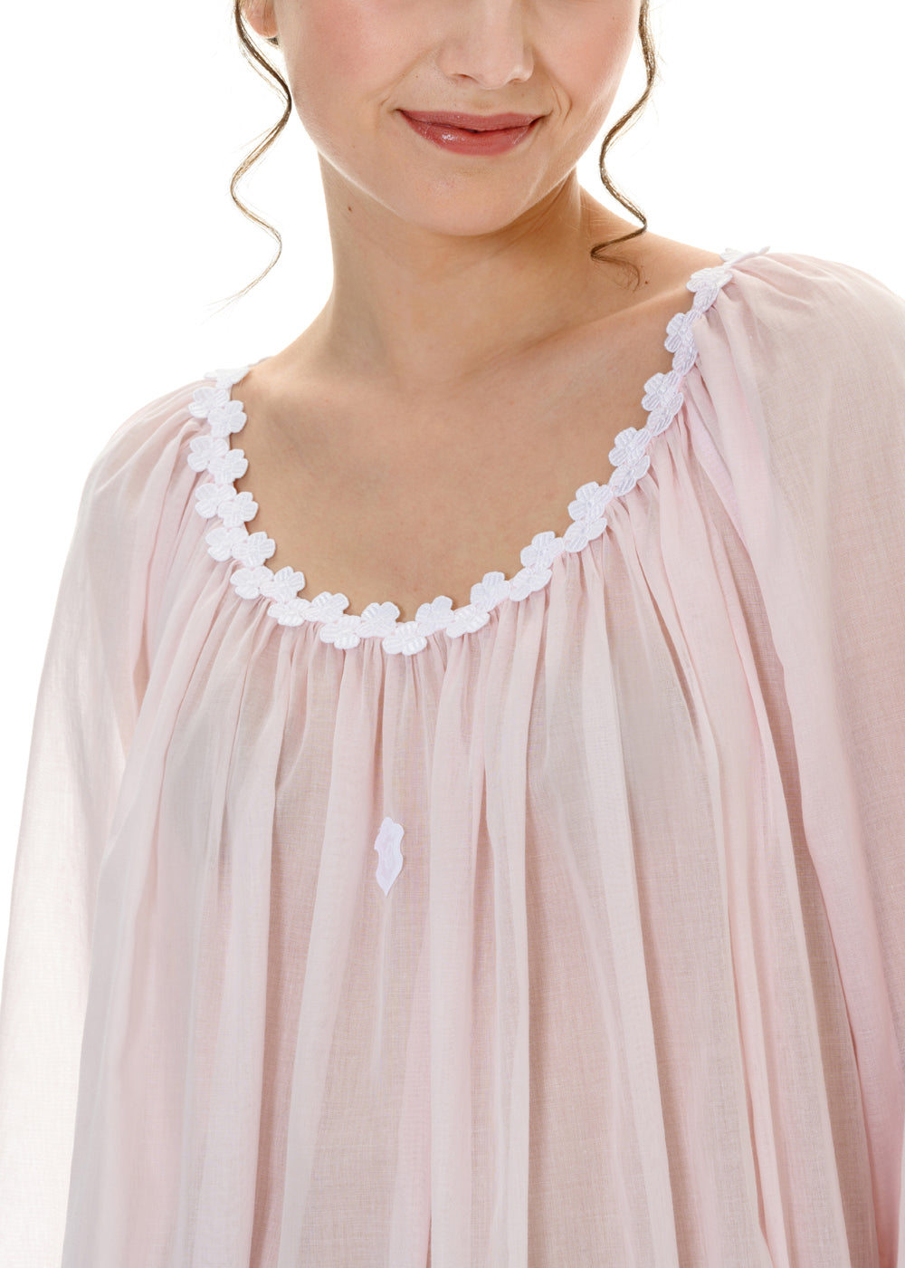 Celestine langes Nachthemd COLINA rosa Blütenspitze langarm