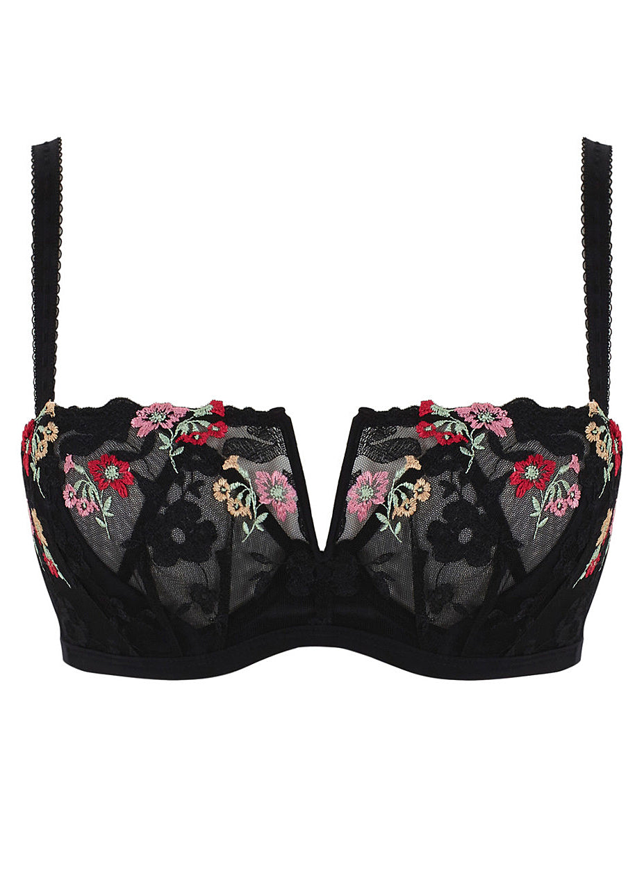 Panache Balconette-BH OTTILIE schwarz Spitze florale Schweizer Stickerei große Cups