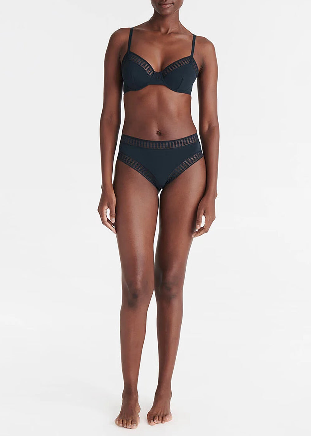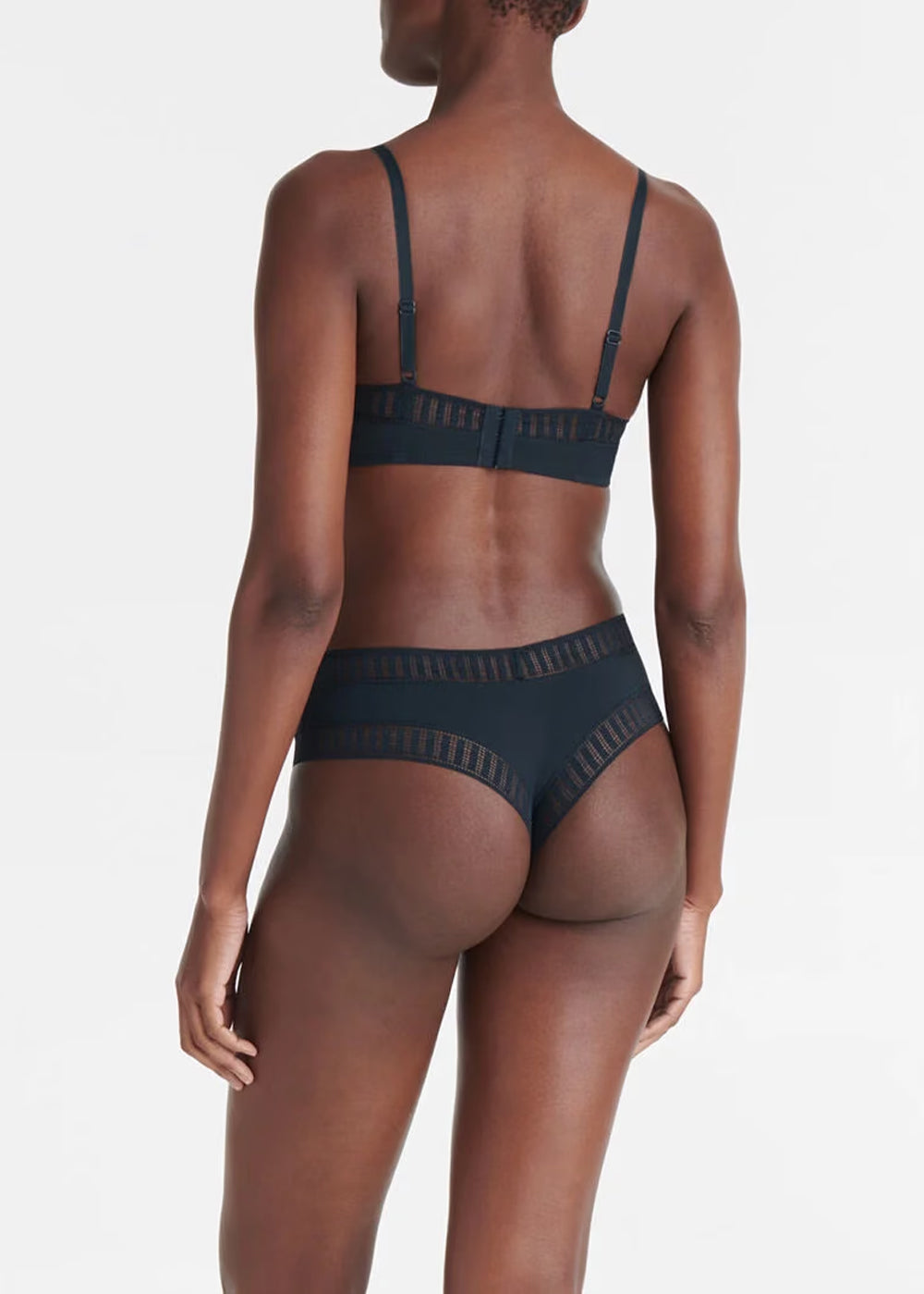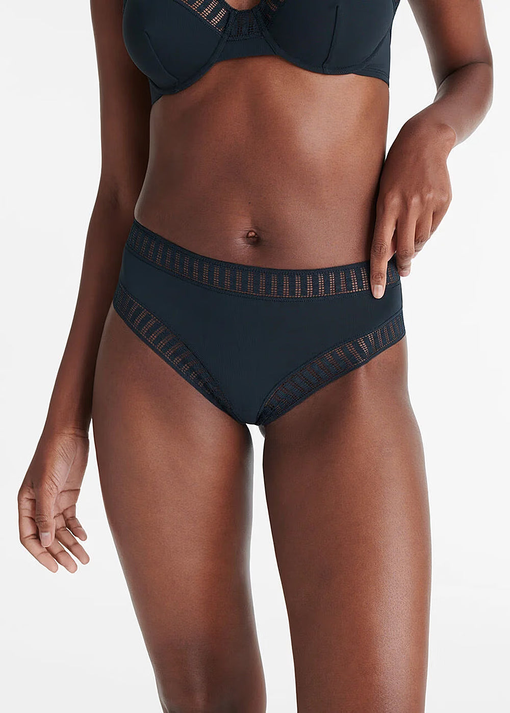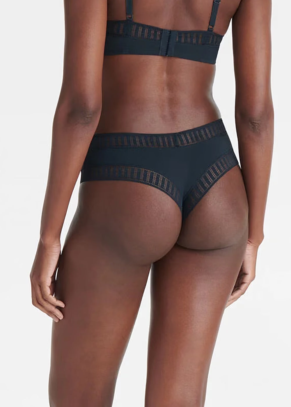 Eres String GABBY schwarz mit geometrischer Spitzenborte aus Jersey