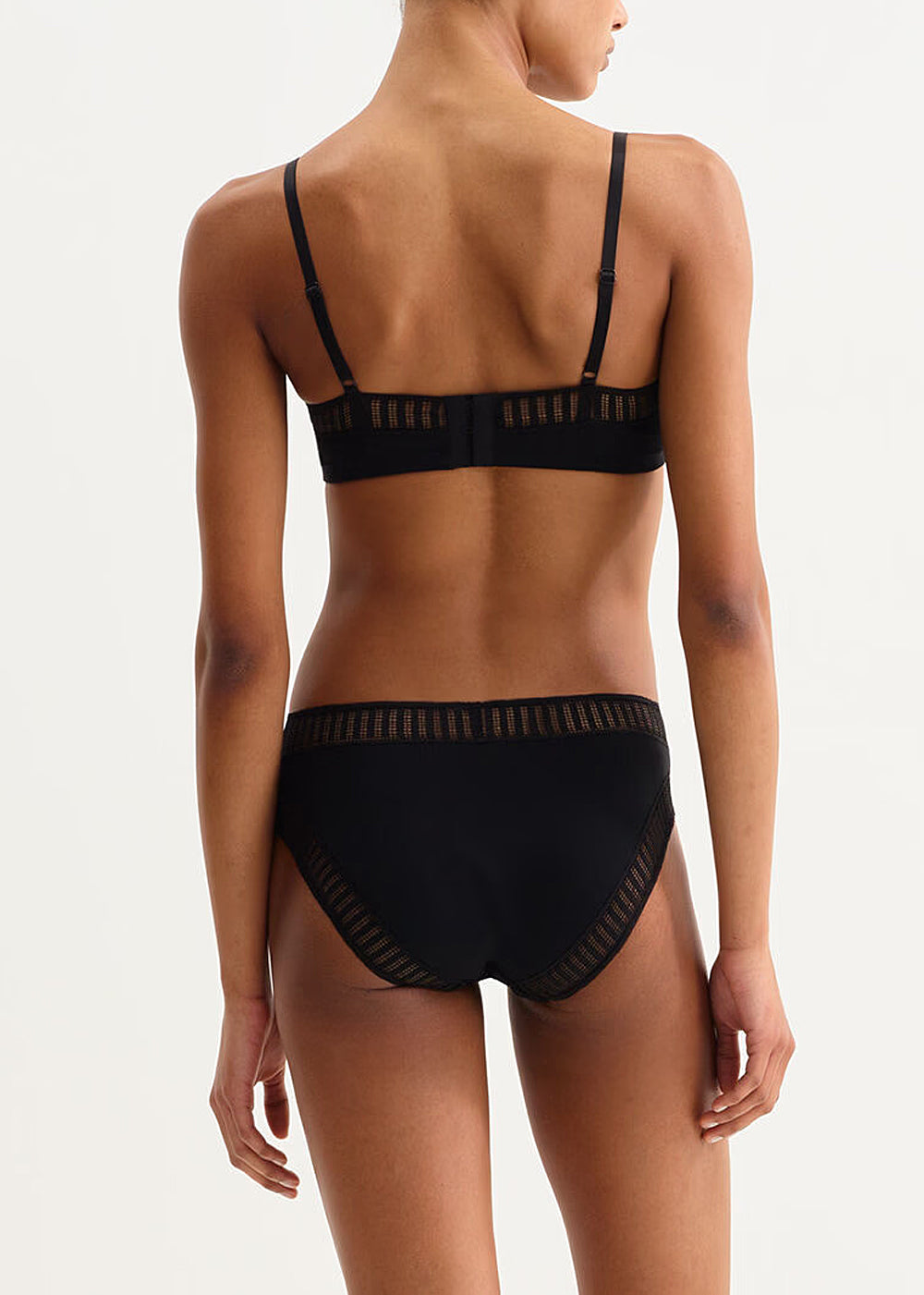 Der aus bequemem, pflegeleichten Jersey gefertigte Tanga JACKY ist mit grafisch anmutenden Spitzenborten verziert. Ebenso ästhetisch wie schlicht stellt er ein Basic der Lingerie-Garderobe dar.