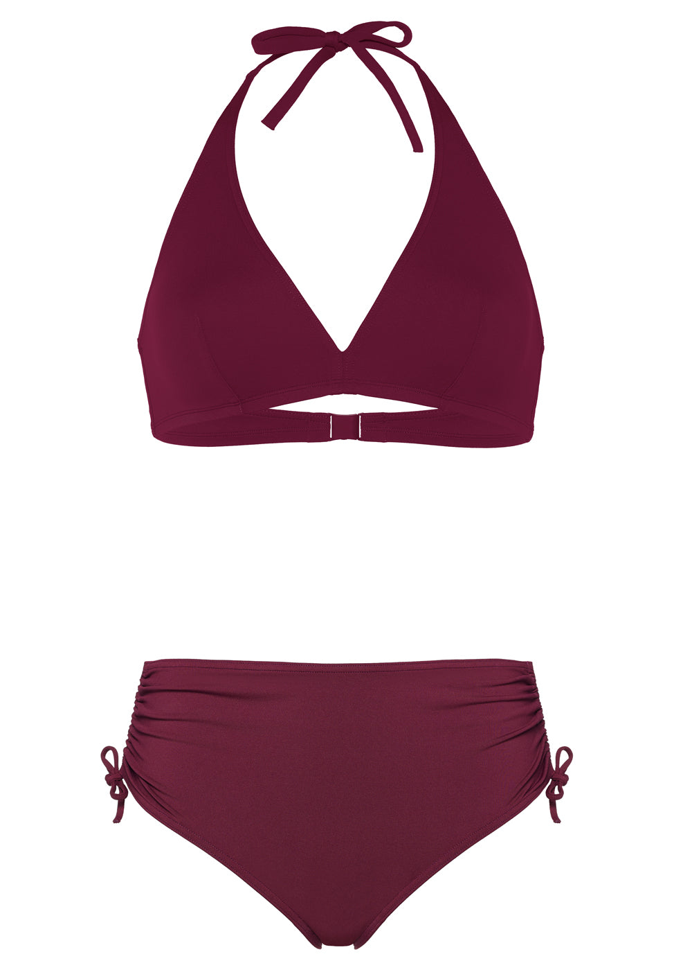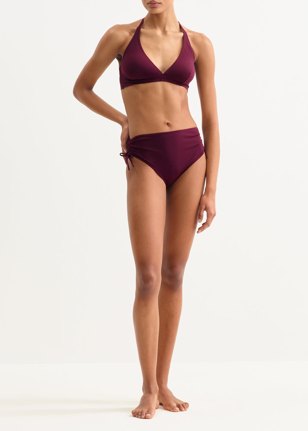 Dank seiner Brustabnäher und Seitenstäbchen bietet dieses Triangel-Oberteil optimalen Halt. Die aus natürlichem Peau Douce gefertigte Bikinihose Ever zeichnet sich durch eine hohe Taille und verstellbare Spaghettibänder mit Logo-Stoppern an den Seiten aus.