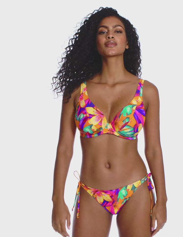 Diese Bikinihose von Freya ergänzt dein tropisch inspiriertes Strand-Outfit perfekt. Mit ihrem farbenfrohen floralen Muster und den verspielten seitlichen Bindebändern bietet sie eine verstellbare Passform sowie einen femininen Look. Ideal für Sonnenanbeterinnen, die Wert auf Stil und Komfort legen.