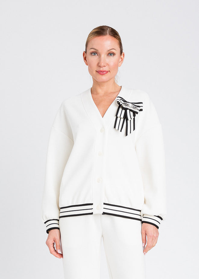 TWIN-SET Jacke BOW champagner langärmlig geknöpft im Bomber Stil Schleife
