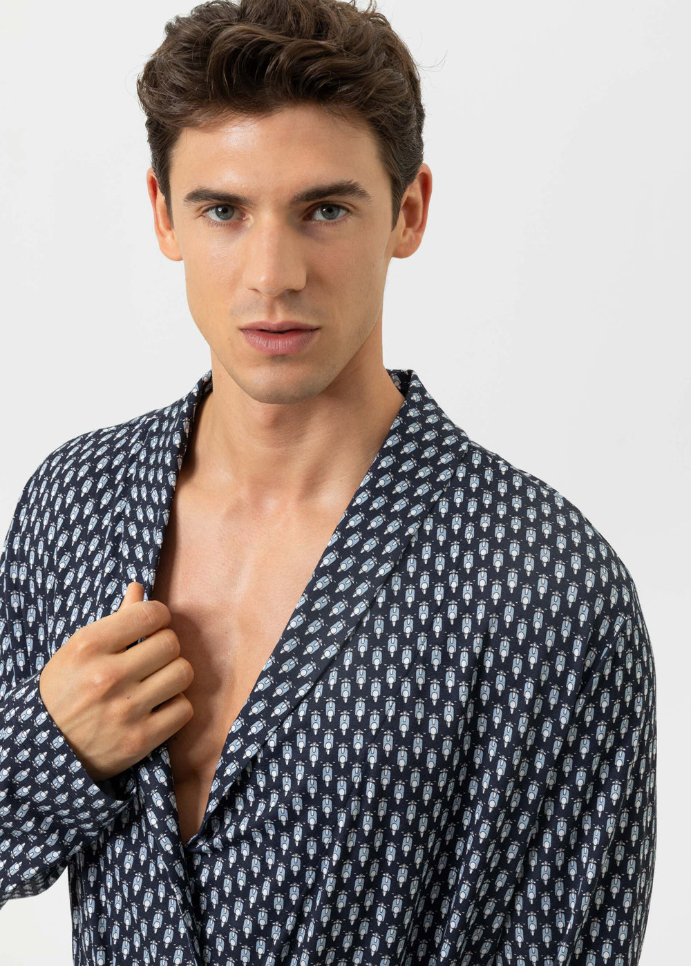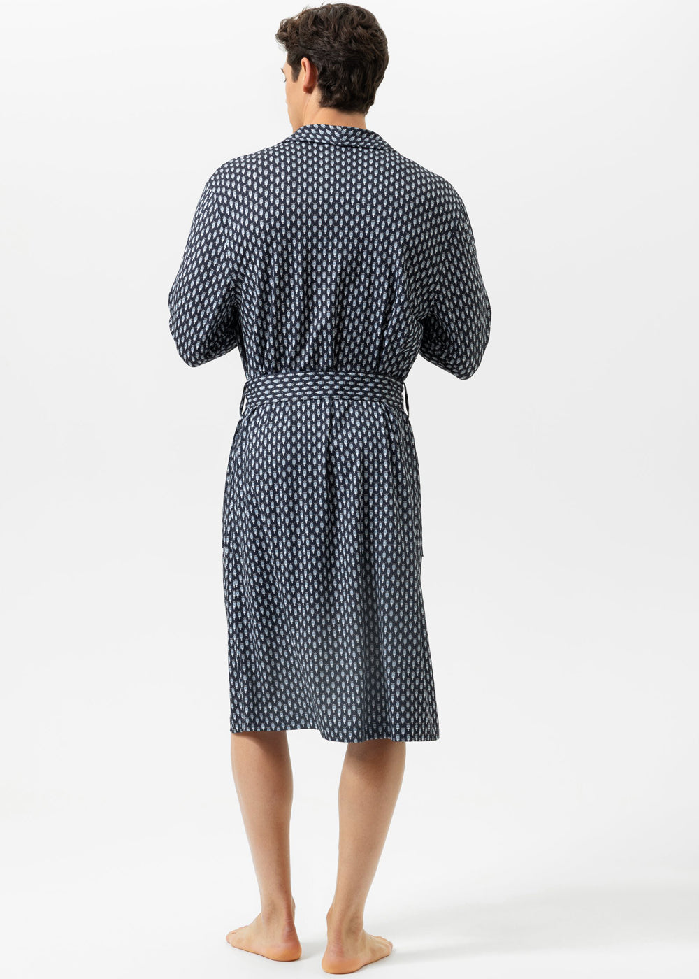 Dieser elegante Hausmantel von Mey aus weichem Modal-Mischgewebe bietet luxuriösen Komfort für stilvolle Herren. Einfach zum Wohlfühlen – für stilbewusste Männer, die Eleganz zu schätzen wissen.